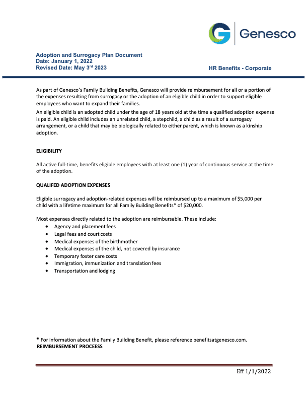 This benefit provides up to a lifetime maximum of $20,000 in benefits for families with fertility issues, and those who are using adoption or surrogacy options.