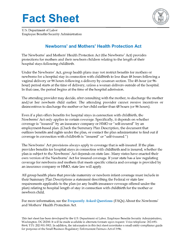 2025 Newborns’ and Mothers’ Health Protection Act Notice