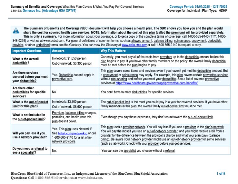 2025 Advantage HSA Individual Summary of Benefits & Coverage