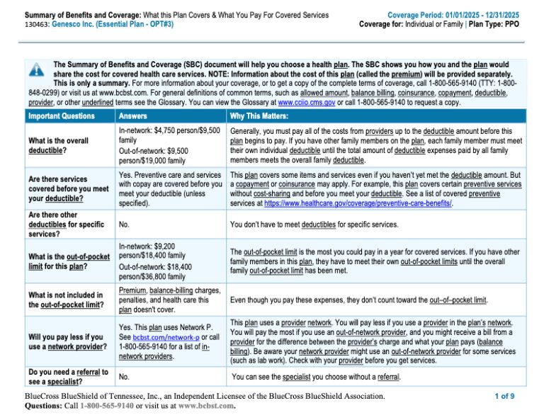 2025 Essential PPO Plan Summary of Benefits and Coverage