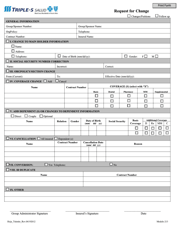 Puerto Rico Triple S Medical Change Request Form