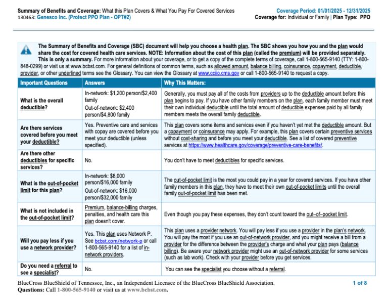 2025 Protect PPO Plan Summary of Benefits and Coverage