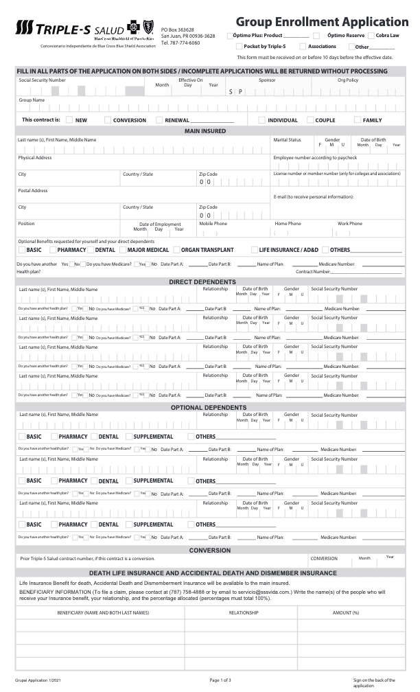 Puerto Rico Triple S Medical New Enrollment Form
