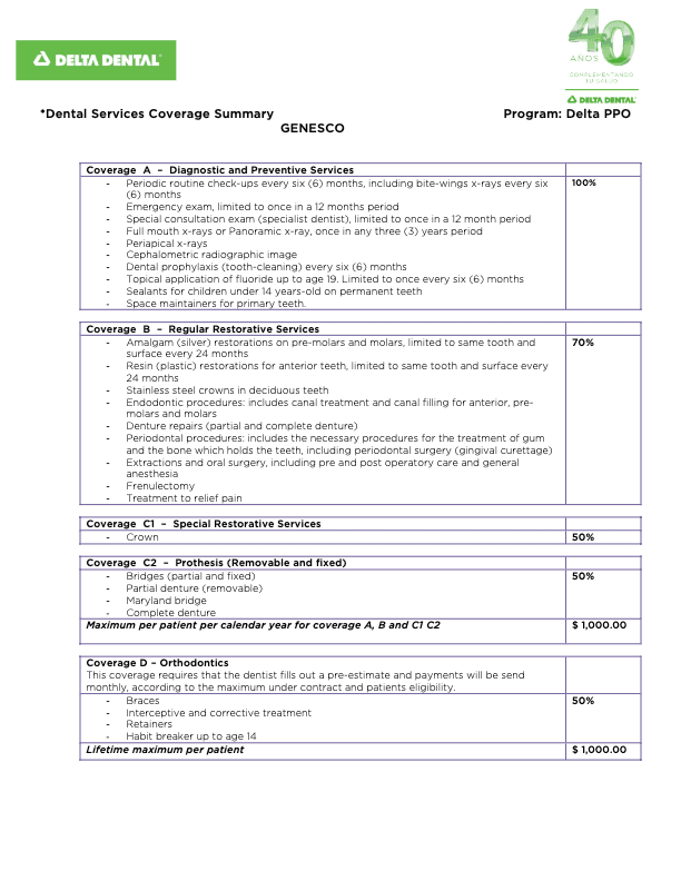 Delta Dental of Puerto Rico Dental & Vision Coverage Summary (English)