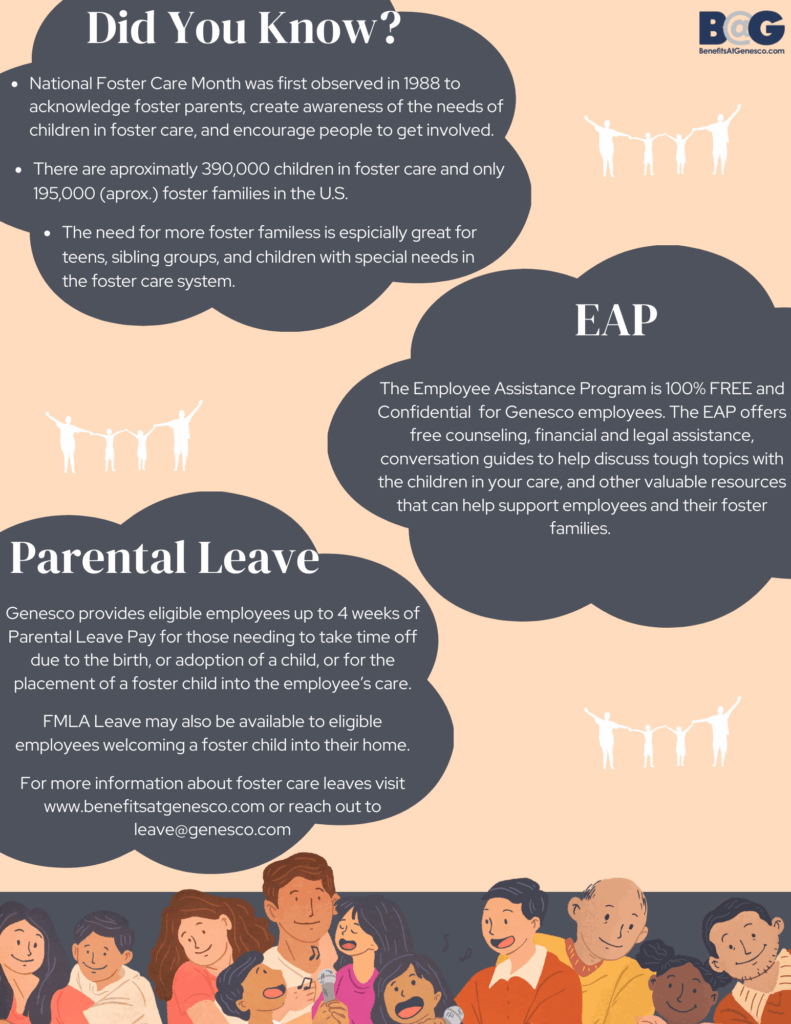 Join us as we celebrate and thank our foster families, raise awareness of the needs of children in foster care, and encourage our communities to get involved during National Foster Care Month this May. If you are a foster parent or are considering becoming a foster parent, Genesco offers a variety of benefits that may be able to assist you on your journey.